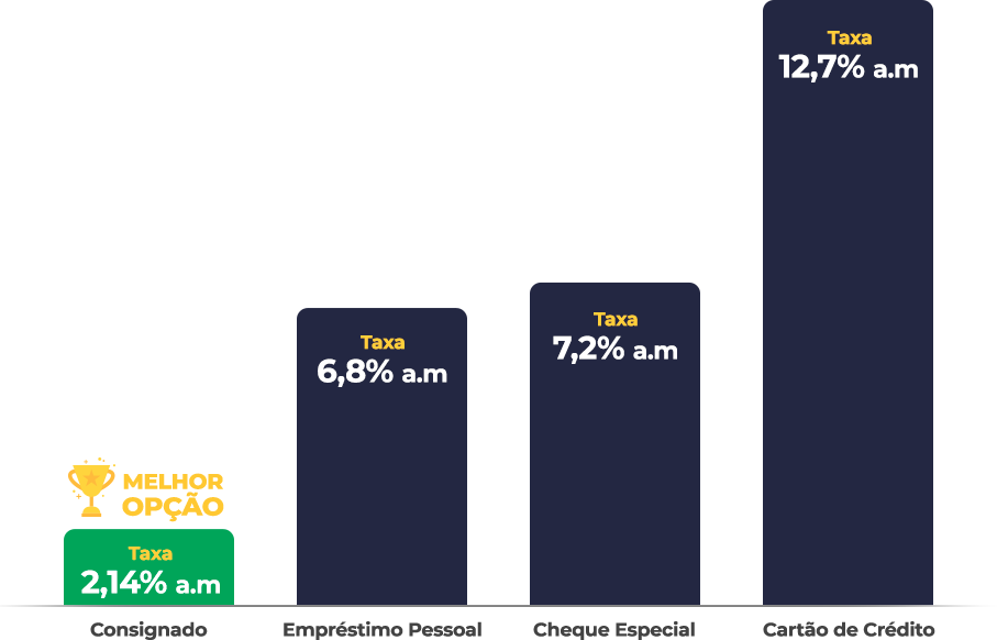 O crédito consignado é rápido e descomplicado, ou seja, a aprovação sai muito mais rápido. Além disso tem parcelas pré-fixadas, maiores prazos e juros mais baixos em comparação aos demais créditos do mercado, compare e veja.